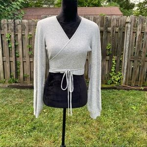 Reformation Remus Cashmere Light Grey Wrap Crop Ribbed Sweater Size Large NWT
