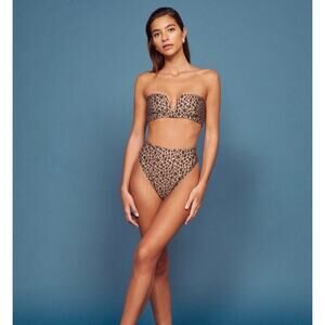 Reformation Resort Leopard Cheetah Bandeau Crop Safari Swim Top Size Medium