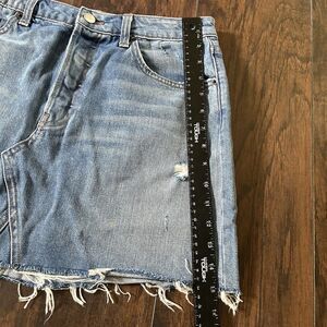 Reformation Retooled Distressed Blue Denim Mini Skirt Salton Wash Size 29 LY397