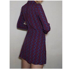 This Reformation Hugh Shirt Dress channels a retro edge with its geometric print in rich berry and cobalt tones. The button-down silhouette and collared neckline create a polished look that’s easy to wear day or night. Viscose-rayon blend cut to a mini length with long sleeves, it balances structure and ease. Style it with a slim belt or tall boots for a modern, put-together finish.