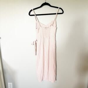 Live out your Plaid dreams in full swing with the Rianne Dress in a blush check design. The Rianne is smocked at the waistline, accentuating your curves with a more relaxed skirt. Topped off with center front buttons and a front slit which adds another distinctive feature to the dress which has adjustable spaghetti straps, a center back zipper, and a faux wrap skirt. This classic dress has a smocked back bodice, it is strapless bra friendly complete with ties at the waist. Unlined.
