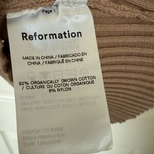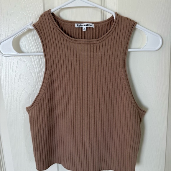 Like new! Beige high ribbed necked tank from reformation. Great condition, flattering. Size medium 92%cotton 8% nylon blend
