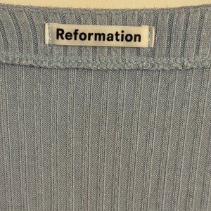 Reformation Ribbed Button-Front Crop Top – Light Blue