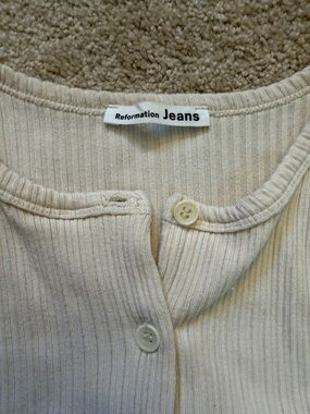 Reformation Ribbed Button-Front Knit Top — Cream