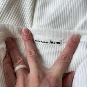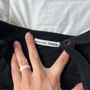 Two tanks from Reformation, both size Small. In good used condition, the white has some slight discoloration under the arms and the black is very slightly faded on the edges of the straps. No other flaws. Unlined (no built-in bra or padding).