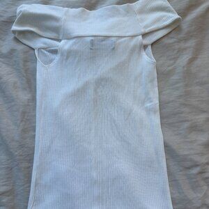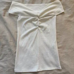Creamy white ribbed top that can be worn directly on or slightly off the shoulder
