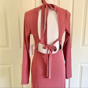 Reformation Ribbed Benedict Long Sleeves Midi Dress in Rust Large MSRP $148