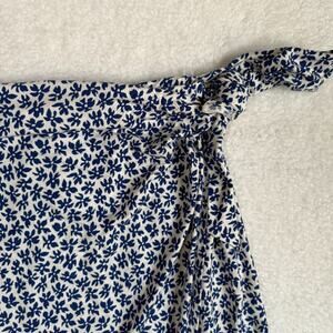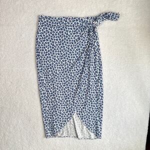 Reformation Rika Bombay Blue Knit Stretch Wrap Skirt Crop Tank Top Set Floral XL