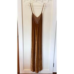 Reformation Rimini Dress Size XS Petite Gold Velvet Silk Blend Full Length Gown