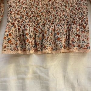 The Roland top is fitted in the bodice with smocking throughout so it’s easy to get in to. It has slightly looser sleeves with elastic at the sleeve opening and cuff for a more dramatic look. - Elastic at cuff - Elastic at sleeve opening - Hip length - Lace detail at cuff - Slightly looser sleeve - Slim fitting bodice - Smocked bodice - Square neck - Strapless bra friendly - unlined.