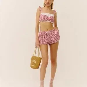 Cute red checkered cotton cropped top from Reformation. New and never worn with tag