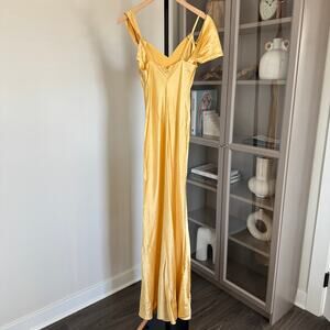 REFORMATION RONDA SILK SUNSHINE YELLOW ASYMMETRICAL COWL NECK MAXI DRESS * Authentic * Size: 12 * Silk charmeuse * Concealed side zipper with hook & eye closure * Asymmetrical cowl neckline & right shoulder  * Adjustable shoulder straps * Draping shoulder  * Column silhouette * Maxi length * Care: Dry clean * New with tags, no flaws! MATERIAL * Outer: 100% silk APPROX. MEASUREMENTS * Across the underarms: 18.5" * Across the waist: 17.5" * Length down the center back: 52.5"