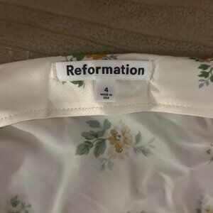 Lightly worn Reformation Ronda Silk Top. Size 4. Perfect for summer and garden parties! Part of the sleeve is off the shoulder on one side.