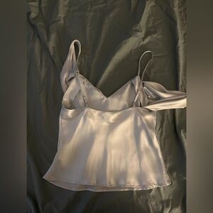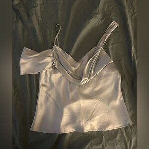 This elegant light blue top features a stylish draped neckline and delicate straps, perfect for any occasion. Its soft fabric ensures comfort and a flattering fit.