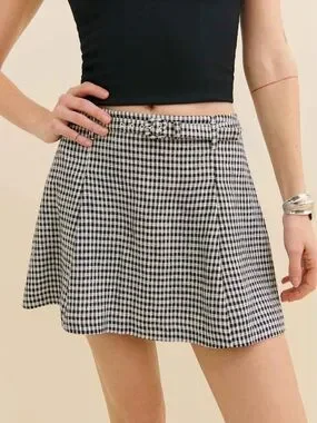 Reformation Rory Linen Skirt In Remy Check Size 2