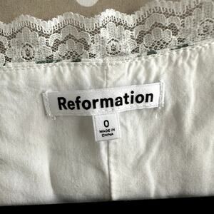 Reformation Rosalie Linen Tie Front Top in Alyssa Floral. Size 0. Features lightweight fabric, floral print, adjustable lace up tie, ties in front, lace trim details. sleeveless, square neckline. cropped length. 100% linen. Great used condition, no notable flaws. Retail $148. Sold out online.