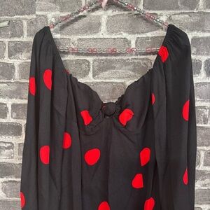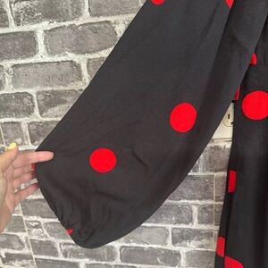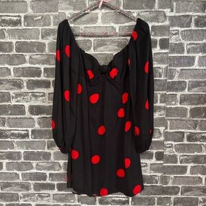 Reformation Roshay mini Dress black red Polka dots off the shoulder