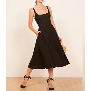 Reformation Rou Knit Dress Black Midi Dress NEW