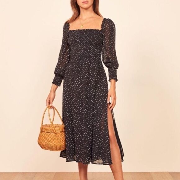 Reformation Rowan Midi Black White Dress Polka Dot Size MP