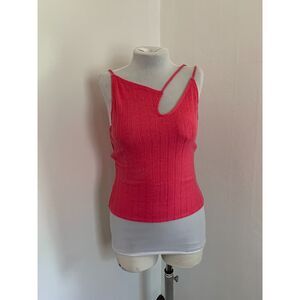 Sexy hot pink ribbed tank from Reformation, asymmetrical cut out style with multi straps. Very comfortable and flattering with lots of stretch. Light weight knit sweater material, not cropped but hits right at waist.