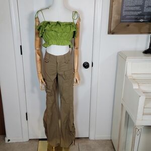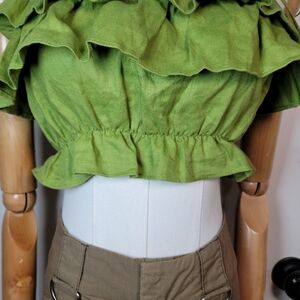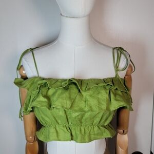 Reformation Ruskin Green Linen Crop Top XS Cottagecore Tank