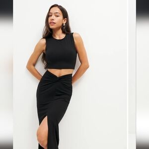 - cropped top and hip hugging skirt with front ruching detail around waist