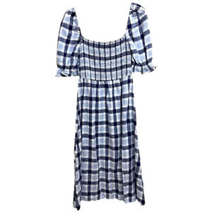 - gingham checkered blue midi dress