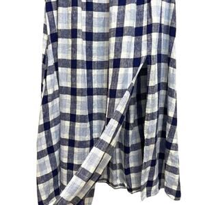 Reformation S Marabella 100% Linen Midi Dress Puff Sleeve Gingham Blue Plaid 4 6