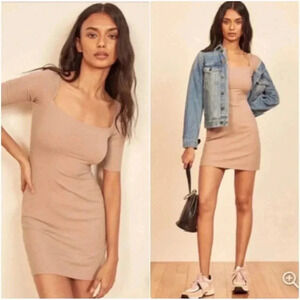 Reformation Sarita Dress Ribbed Square Neck Mini Dress Size Large