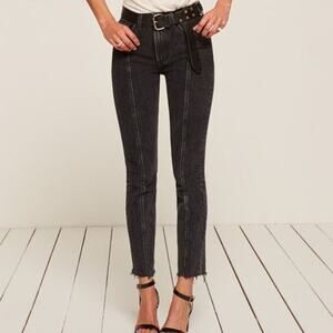 Reformation Seamed Jeans WMNS 26 Black Pacific Wash Elastic Back Waist High Rise