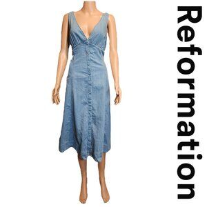 Reformation Sebastien Denim Midi Dress Broken Button NWT Size 10