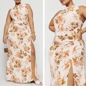 Reformation Senna Floral Ruched High Neck High Slit Bella Maxi Dress Size 18 is brand new with tags! Sold out everywhere and such a stunning wedding guest or event piece!