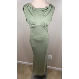 Reformation Seona Cowl Neck Open Back Knit Artichoke Green Maxi Dress Size M