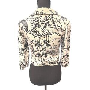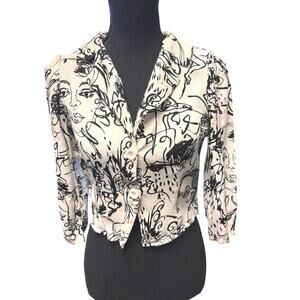 Reformation Sera Top in Vogue Sz 6 Printed Fitted Button Front Collared Cropped