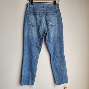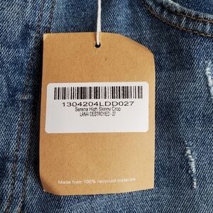 This is a high rise, tight fitting jean with a skinny, cropped leg. The Serena is fitted throughout with a raw hem.