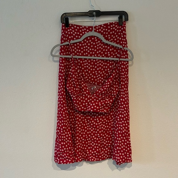 @theroxynyc hey! So this fits like an exact size 2 I’m 26 inch waist and the skirt fits perfectly. Please note that it’s not stretchy. The shirt on the other hand is stretchy in the back
