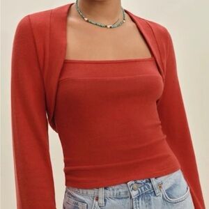 Reformation 2 piece Chloe knit shrug tank sweater set in long-sleeves.