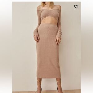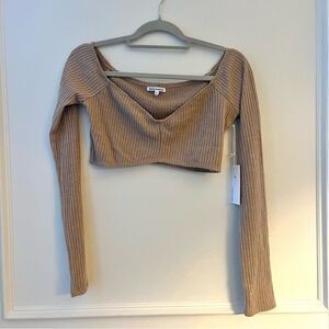 Reformation Shayne Long Sleeve Cropped Ribbed Top in Buff Beige NWT Size Medium