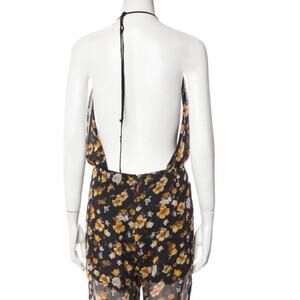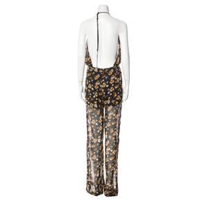Reformation Sheer Yellow Floral Black Jumpsuit Size Small EUC