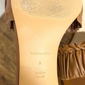Reformation Shereen Ruched Block Heel Mule in Pecan 9