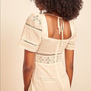 The Shore is fitted in the bodice with an a-line skirt. It has lace detailing throughout and features a center back zipper. It is the perfect little summer dress.