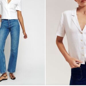 Reformation Short Sleeve Linen Button-Up Shirt XL NEW $148