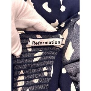 Reformation Sigmund Dress 12 Womens Blue Print Smocked Side Slit Midi