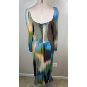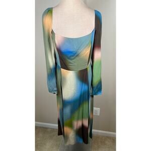 Reformation Sigmund Long Sleeve Blur Printed Midi Dress Size 12
