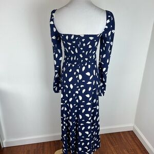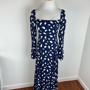 Reformation Sigmund Long Sleeve Printed Midi Dress Navy Blue Size 4 square neck