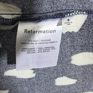 Reformation Sigmund Midi Dress Splatter Speckled Slit Navy Blue Long Sleeves 4