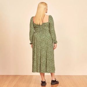 Reformation Sigmund Midi Dress in Green Moiret Print Size 14
