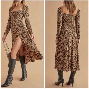 Reformation Sigmund Square Neck Midi Dress In Leopard Blitz Print