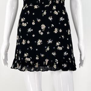 Reformation Silvia Mini Dress Women’s Size XS Black Floral Ruffle Sleeveless