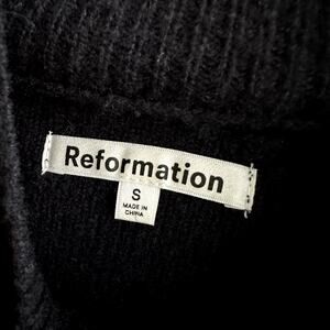 Reformation Sinclair Cable Knit Wool Sweater in Navy Blue.